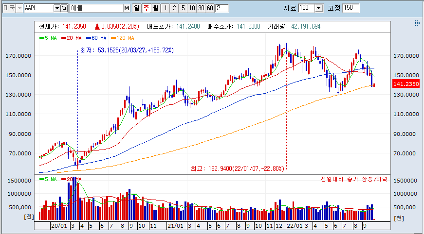 솔직히 애플을 제외하면은 제가 미국 주식을 처음 본 시점에 비하면 거의 50% 폭락입니다.