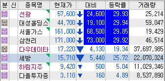 그나마 거래량이 있는 다우데이타나 하림지주 세방등은 저점 매수, 하한가 따라잡기등의 단타유입이 있었지만 선광과 대성홀딩스 서울가스,삼천리는 하한가 잔량을 이겨낼 물량 자체가 없어보입니다.
