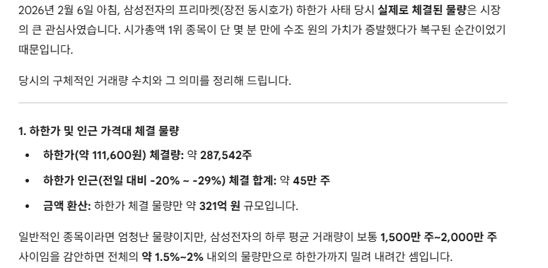 2월 6일 삼성전자 장 초반 하한가를 기록했습니다.