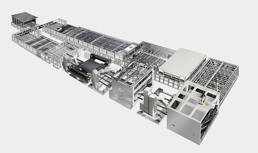 ③ PI OVEN HVCD 공정을 마친 Glass를 Chamber에 투입한 후, IR Lamp를 활용하여 내부 온도를 상승 시켜 용제를 제거함으로써 건조시키는 설비입니다. Glass 전면의 온도 Uniformity를 유지하 고, 기화된 용제를 효율적으로 배출시킬 수 있도록 설계되었으며, Chamber별 단독 제어가 가능하여 다양한 공정 조건을 대응 할 수 있습니다.④ 부대장비 - 세정기(Cleaner) : Glass Particle을 세정하는 Unit - 검사기(AOI) : Particle 유무 및 수량 검사 Unit - 냉각기(IMC Buffer) : HVCD 공정 후 상온으로 냉각하기 위한 Unit