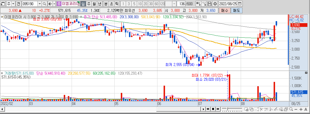 단기 반등하여 오늘 현재 3.690원 입니다.