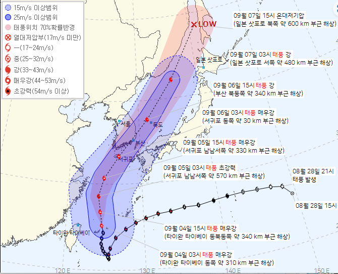 영향범위도 전국적으로 영향을 받을 것으로 보이는데 늘 그랬던 것처럼 상륙 전에 약해지기를 기대해 봅니다.